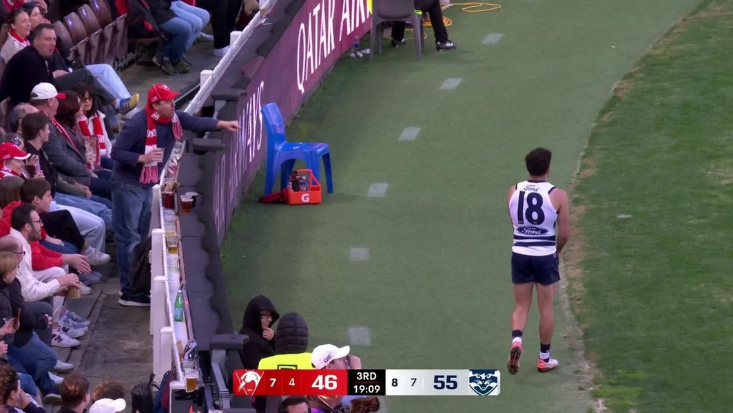 The Swan gun gave away a free kick when hitting O'Connor with a high blow during a tussle and later brought the Cats tagger to ground heavily in a tackle.